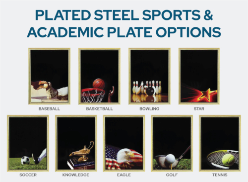 The Piano Finish Plaque is by far our most popular choice. The high gloss finish brings out the rich colors found in the wood. The piano finish wood plaque includes a rounded edge and Hi-Definition Brass Plated Steel Plaque Plate. Each plate gives you the look of brass for less! They have Laserbrite engraving and Florentine Highlights. They come in 2 sizes and multiple sports or styles. They are easily customizable by laser engraving.
